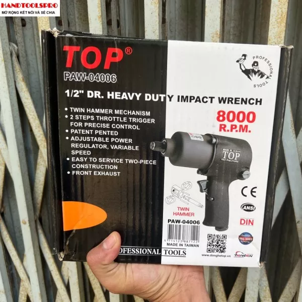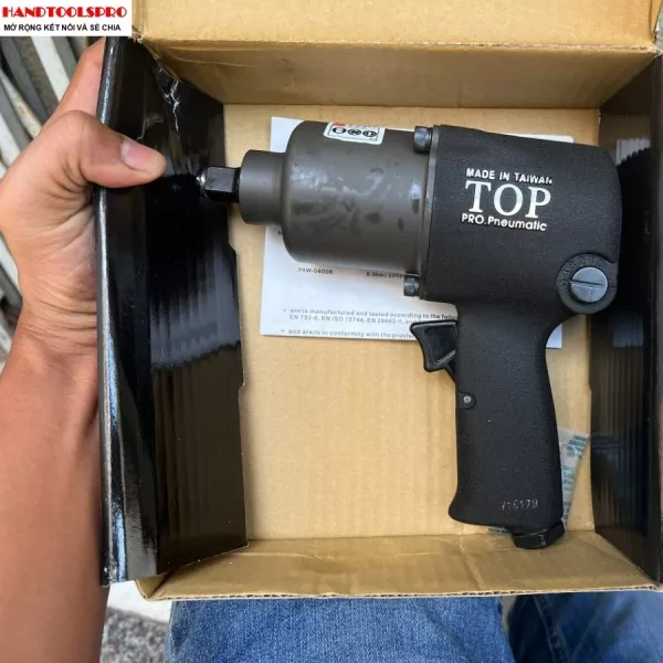 Súng mở bu lông bằng khí nén 1/2” 2 búa cao cấp thương hiệu TOP, có xuất xứ từ Đài Loan, sản xuất theo công nghệ châu Âu, và các linh kiện đều được chế tạo bằng chất liệu cao cấp, đảm bảo độ bền lâu dài cho sản phẩm.