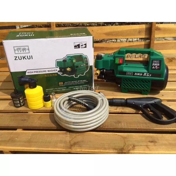 - Máy xịt rửa cao áp Zukui RS3 được trang bị motor cảm ứng từ, với ưu điểm vận hành ít ồn, dễ dàng tự hút nước tự động từ xô, chậu. Bên cạnh đó, Zukui có khả năng tự ngắt máy khi nhả cò tiện dụng.