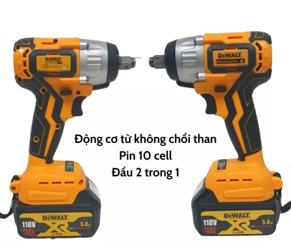 Máy siết bulong DeWalt 118V - 3 ĐÈN LED KÈM 9 ĐẦU KHẨU VÀ ĐẦU CHUYỂN VÍT