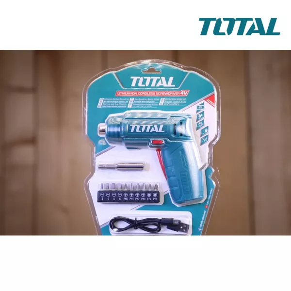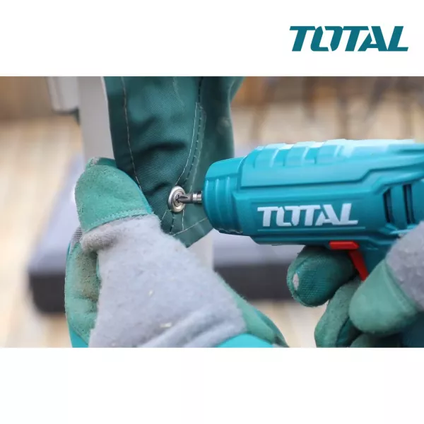 Máy vặn vít pin 4V Total TSDLI0402 có thiết kế nhỏ gọn, tiện dụng. Máy sử dụng pin giúp bạn có thể dễ dàng bắt vít ở bất kỳ vị trí nào: Trên cao, góc nhỏ hẹp hay nơi xa nguồn điện. Vỏ máy được bọc nhựa cách nhiệt hiệu quả. Thân máy nhỏ gọn hỗ trợ thao tác bằng một tay thoải mái. Máy có đầu lục giác 1/4'', lắp ráp các mũi vít nhanh chóng. Với chức năng đảo chiều sẽ hỗ trợ bạn mở vít hiệu quả. Thiết kế tay cầm có độ nhám cao, tránh trơn trượt tay. Phía trước máy trang bị thêm 1 đèn Led chiếu sáng để người dùng có thể làm việc tốt ở những nơi có ánh sáng thấp. Thân máy khoan thiết kế khe tản nhiệt để làm mát động cơ bằng gió, giúp máy vận hành bền bỉ hơn. Cò bóp bấm nhẹ, bố trí ngay ở tay cầm cho thao tác thuận tiện nhất.