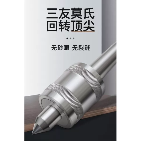 - Một mũi chống tâm, thường được dùng để đỡ chi tiết khi gá trên ụ sau của máy. Chi tiết được tiện giữa các mũi chống tâm phải có một lỗ tâm được khoan 60 độ để tạo mặt tựa cho phép chi tiết quay trên các mũi chống tâm.