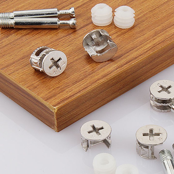 Ốc cam liên kết chuyên dụng cho các xưởng ván công nghiệp, Được dùng trong các mối ghép liên kết tủ, kệ, sử dụng ốc cam có thể tháo lắp các sản phẩm mộc dễ dàng. Sản phẩm làm từ thép, nhựa , gang - gia công tỉ mỉ đảm bảo độ cứng, không rỉ sét và không vỡ khi siết. Đây là sản phẩm không thể thiếu trong mỗi gia đình. Quy cách đóng gói 20 bộ / bịch