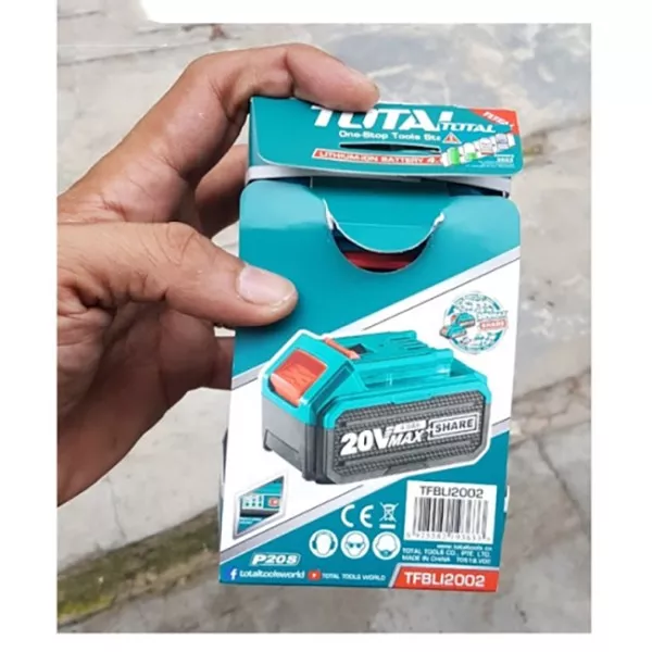 Total TFBLI2002 là loại pin Lithium-ion 20V Max, dung lượng 4Ah. Pin Lithium-ion 20V/4.0Ah Total TFBLI2002 phù hợp cho nhiều loại máy dùng pin Total 20V như máy mài góc, máy khoan pin, máy cưa xích...