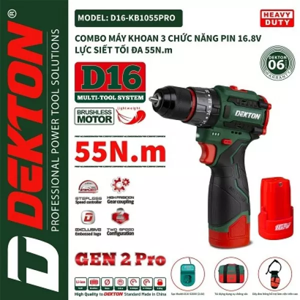 Máy khoan 2 chức năng pin Dekton D16-KVT1055PRO