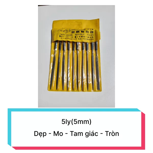 Bộ Dũa mỹ nghệ bao vàng 5ly(5mm) - 4 kiểu Dẹp - Mo - Tam giác - Tròn