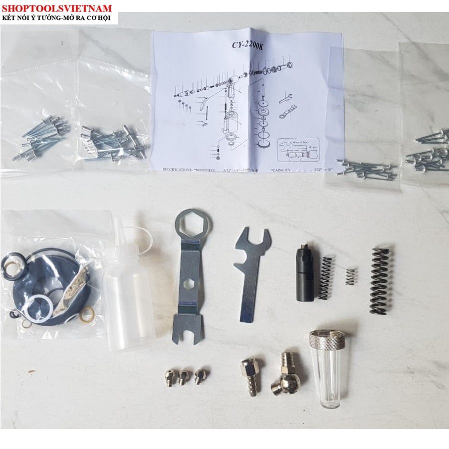 - Đinh rive: 3/32",1/8", 5/32", 3/16" mỗi size 10 pcs.