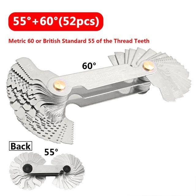 THƯỚC ĐO BƯỚC REN TARO 52 LÁ dùng để đo khoảng cách, kích thước giữa các bước ren trên mỗi bulong, đai ốc và phụ kiện thủy lực...Bộ dưỡng đo ren rất phù hợp với dân thiết kế, công trình. Sản phẩm cho kết quả một cách chính xác, nhanh chóng, ứng dụng nhiều trong những ngành công nghiệp chế tạo, đo kiểm, cơ khí,...Tiêu chuẩn và chỉ số trên mỗi lá của thước đo chúng ta cần nắm rõ để sử dụng khi đó. Chỉ số đo của bulong (3 / 8-24 và 10mm X 1) thường rất nhỏ nên nhìn khá giống nhau nên phải sử dụng bộ dưỡng đo ren đến lá thứ 3 vẫn cho kết quả giống nhau thì kết quả đo mới gọi là thành công. Việc sử dụng bộ dưỡng đo ren cũng rất hữu ích trong việc xác định các chi tiết trong máy còn được sử dụng được hay không như trục quay trong máy để có thể thay thế phù hợp mà không ảnh hưởng đến các bộ phận khác của máy.
