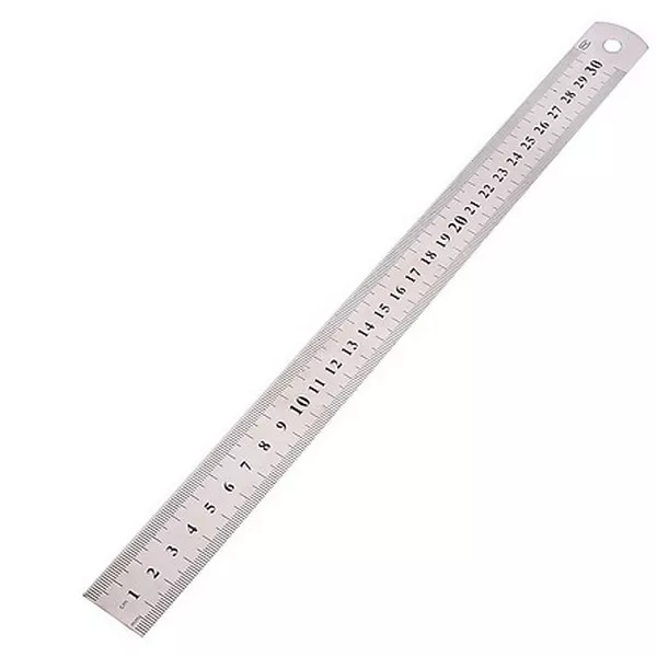 Thước đo độ dài được làm từ thép không gỉ dày đến 1mm với một mặt khắc theo hệ mét 30cm và mặt còn lại theo hệ inch 12 inch thực sự là một công cụ đo cho những thợ yêu thích đồ nghề kiểu nồi đồng cối đá