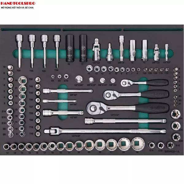 Sata 09925 – Bộ sản phẩm bao gồm tủ đồ nghề 95125 và bộ dụng cụ cầm tay 210 chi tiết là bộ trang thiết bị cao cấp của Sata – Mỹ.