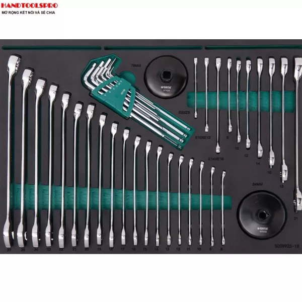 - 19 cờ lê với kích thước 8, 9, 10, 11, 12, 13, 14, 15, 16, 17, 18, 19, 20, 21, 22, 23, 24, 25, 27mm.