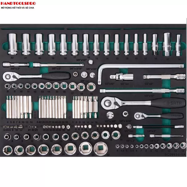 Sata 09930 – Bộ sản phẩm bao gồm tủ đồ nghề 95126 và bộ dụng cụ cầm tay 249 chi tiết chuyên dùng để sửa chữa chuyên biệt cho hầu hết các dòng xe hơi trên toàn cầu.