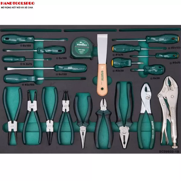 - 19 cờ lê với kích thước 8, 9, 10, 11, 12, 13, 14, 15, 16, 17, 18, 19, 20, 21, 22, 23, 24, 25, 27mm.
