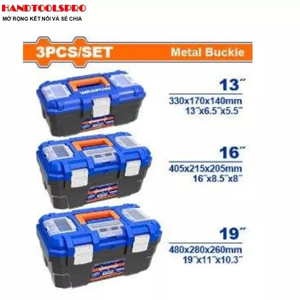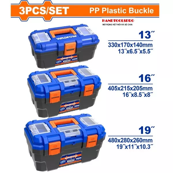 Bộ 3 Thùng đựng dụng cụ nhựa 13-16-19 inch WADFOW WTB4103 (khóa kim loại)