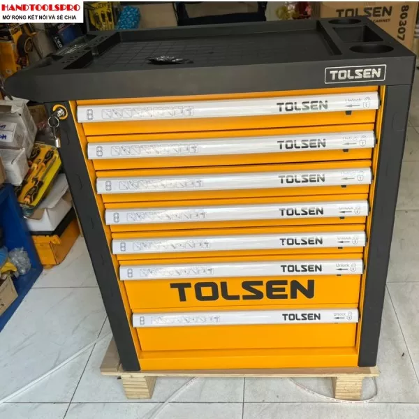 *Tủ Kéo 7 Ngăn Tolsen 80307 76.5 x 46.5 x 97.6 cm được sản xuất trên dây chuyền công nghệ hiện đại, với thiết kế các ngăn kéo dễ dàng cất giữ đồ nghề và dụng cụ lắp đặt, đặc biệt sản phẩm được trang bị bánh xe giúp di chuyển nhẹ nhàng và thuận tiện tới nơi mong muốn.