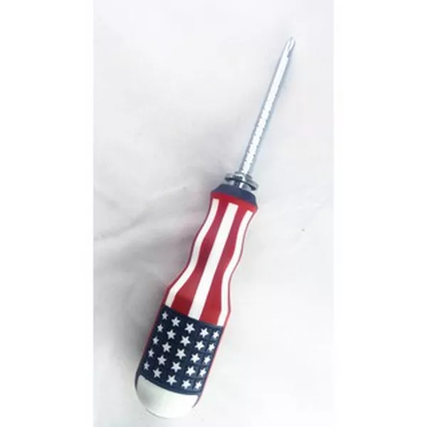 Đó là Tua vít cán cờ Mỹ . Loại tu vít này được sản xuất tại Trung Quốc và được chế tạo bằng thép tốt. Cán vít được chế tạo bằng nhựa tốt, tại vị trí để tra mũi vít vào, nhà sản xuất thiết kế theo dạng nam châm mục đích để người sử dụng lực siết chắc chắn.