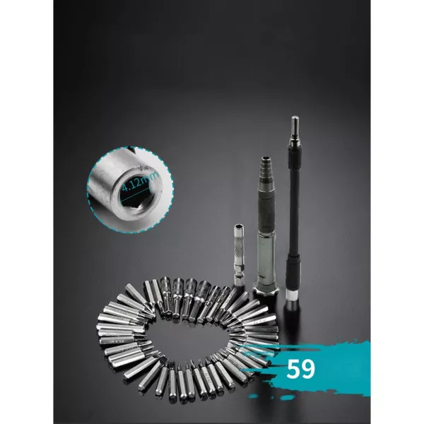 Bộ tua vít 59in1 sử dụng hợp kim thép Cr-V (chromium valadium) Thân tua vít được làm bằng hợp kim không gỉ, ngoại hình sang trọng, trải nghiệm tối ưu khi vặn ốc.